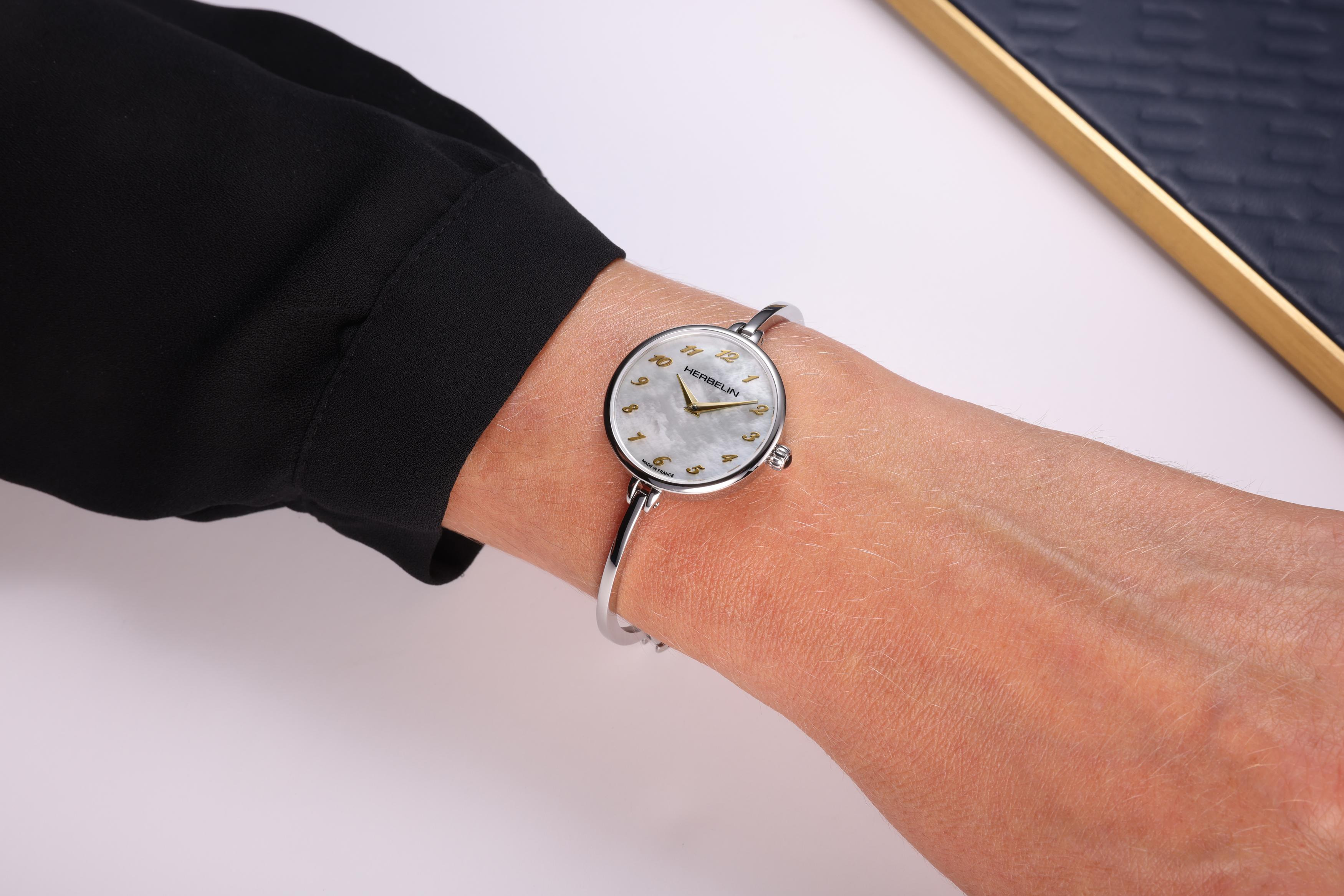 Herbelin Fil 17206B29T, een elegant dames polshorloge, heeft een roestvrijstalen kast, zilverkleurige band en saffierglas. De wijzerplaat is van parelmoer met Arabische cijfers. Het horloge heeft geen datumaanduiding. Draag dit verfijnde uurwerk bij formele of zakelijke gelegenheden voor een stijlvolle uitstraling. Perfect te combineren met zilverkleurige accessoires voor een elegante look.