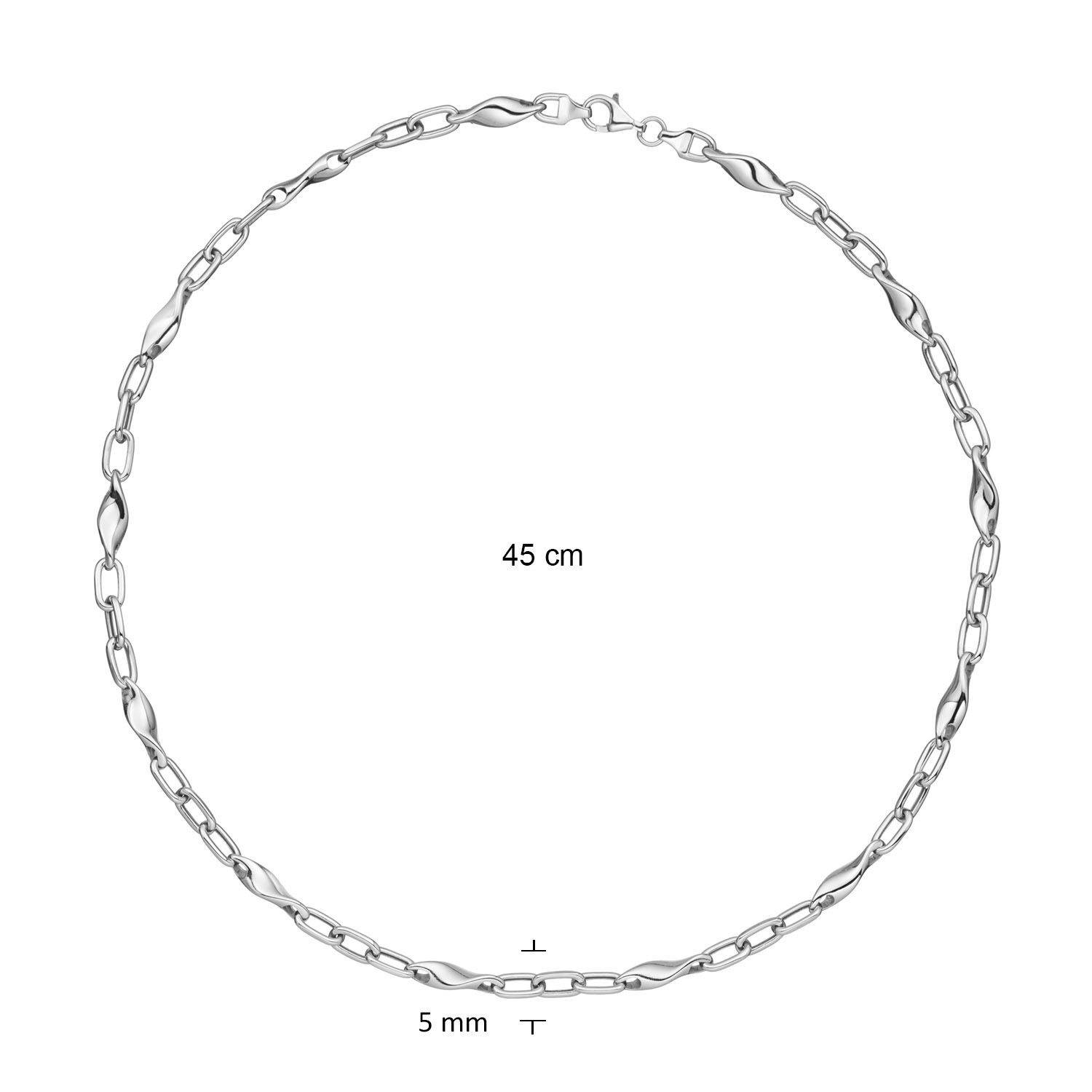 Het Collier Fantasie Zilver 45CM 925RD, modelnummer 102098945, is een prachtige zilveren ketting met een gewicht van 14,2 gram. De hanger heeft een breedte en diepte van 5,0 mm. Dit collier, perfect als blikvanger voor elke gelegenheid, draag je het beste met elegante kleding voor een stijlvolle touch. Categorie: Sieraad. Type: Ketting.