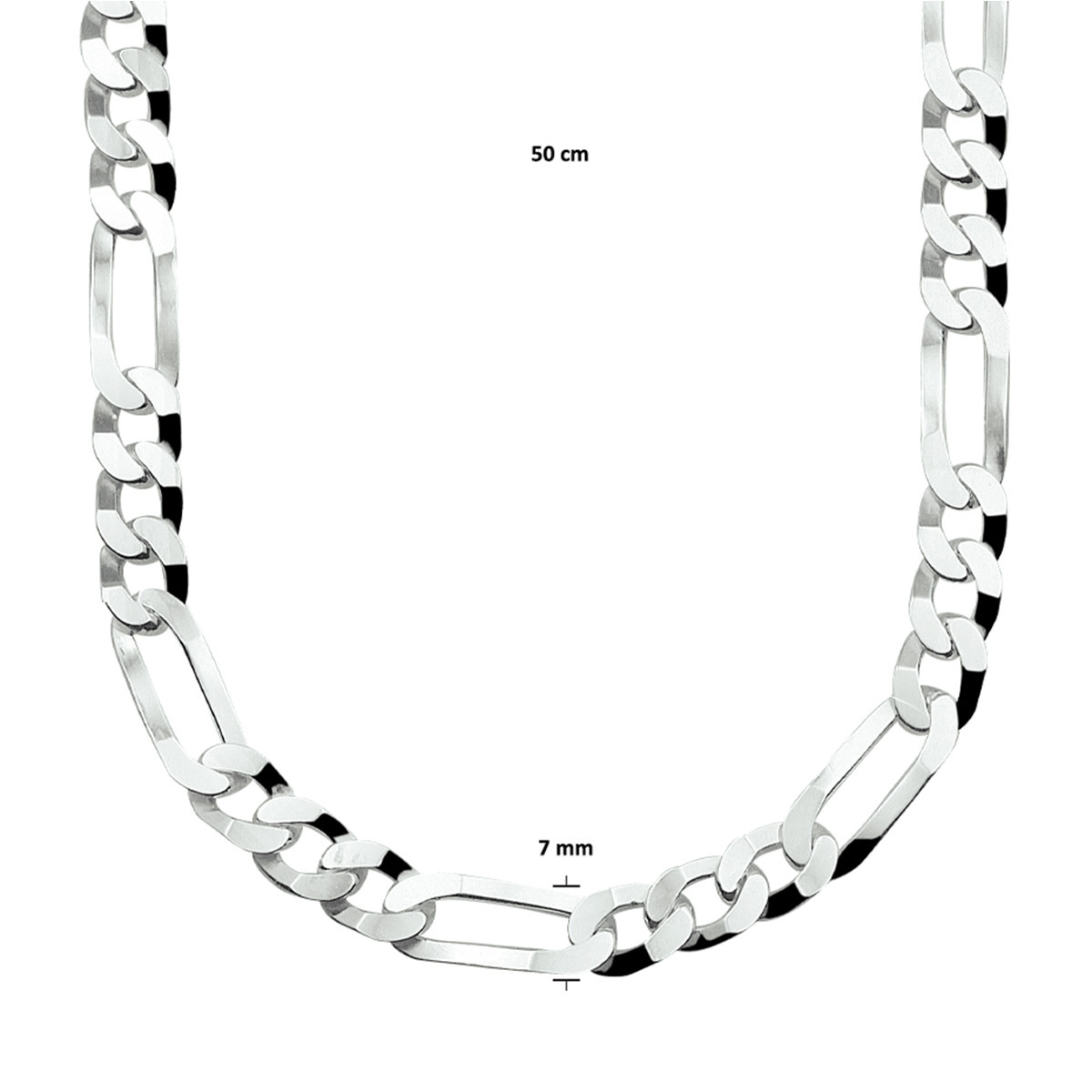 Stijlvol zilveren collier met een figaro schakel. Het collier heeft een draaglengte van 50cm en een schakelbreedte van 7mm. Uitgevoerd met een stevige karabijn sluiting.
