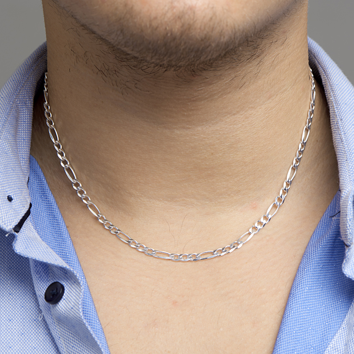 Zilveren lengte artikel met figaro schakel. De schakelbreedte is 4.5mm.