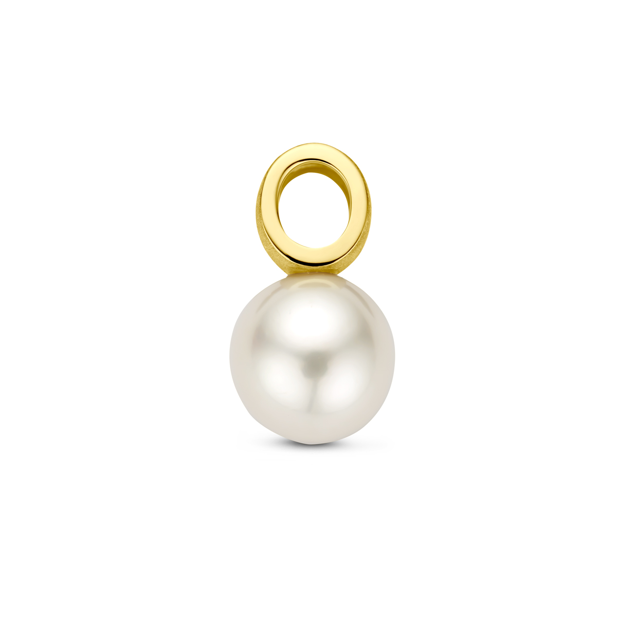 14k Geelgouden hanger uitgevoerd met een zoetwaterparel. De hanger heeft een hoogte van 17mm. De parel heeft een diameter van 10mm.