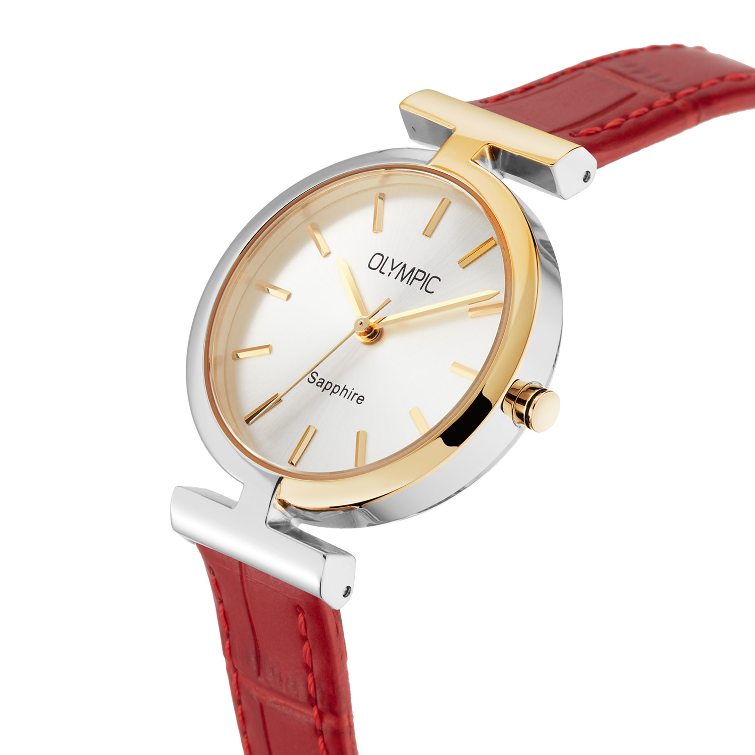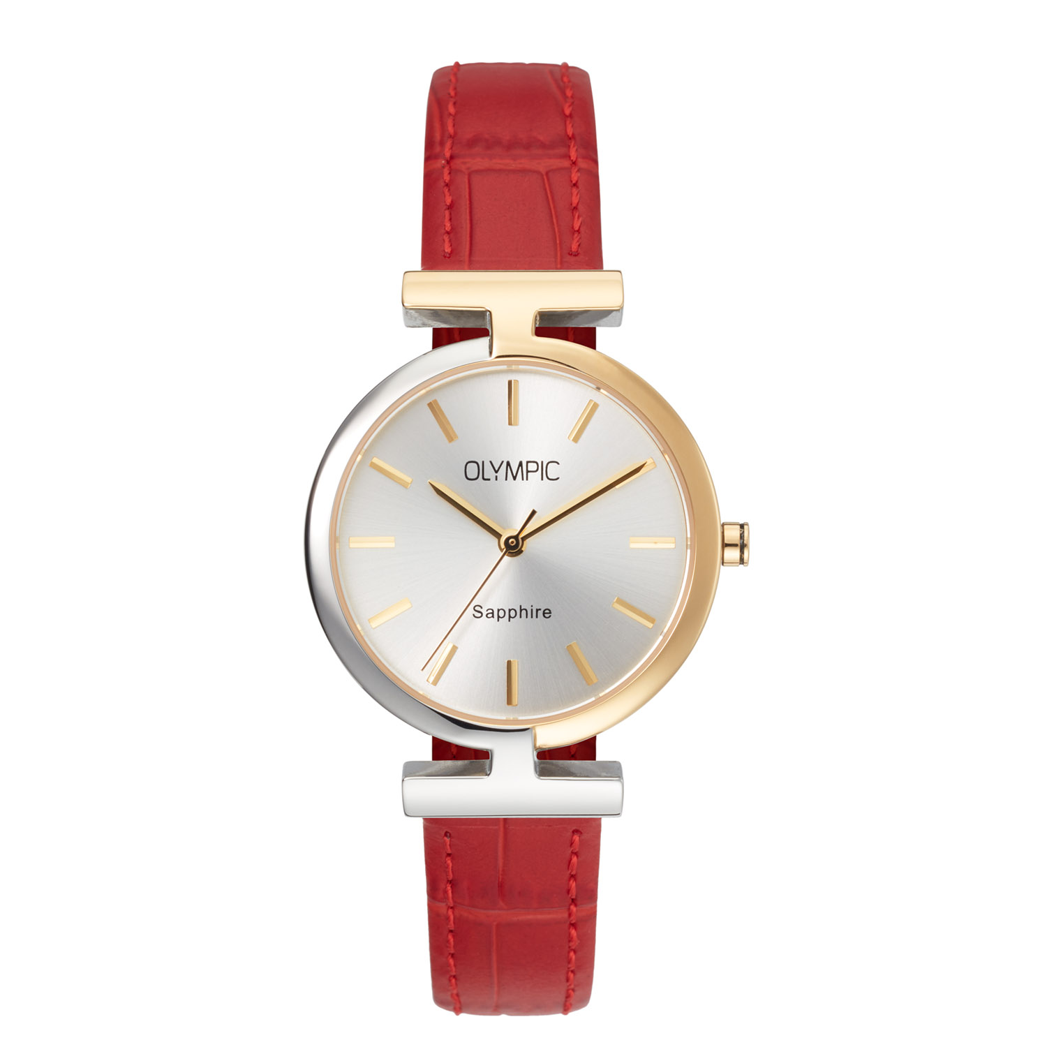 Dit unieke Olympic horloge met artikelnummer: OL90DSS002B is een chique dameshorloge. Het horloge heeft een stalen bicolor kast met een speciale vaste band aanzet en een zilverkleurige wijzerplaat met fijne wijzers en strepen. Aan de kast zit een zilverkleurige mesh band met een kliksluiting. Tevens ontvang je bij dit horloge een rode lerenband. Beide banden hebben een easy click systeem en zijn dus gemakkelijk zelf om te wisselen. Het horloge heeft een saffierglas, een doorsnee van 35mm en is 5ATM.