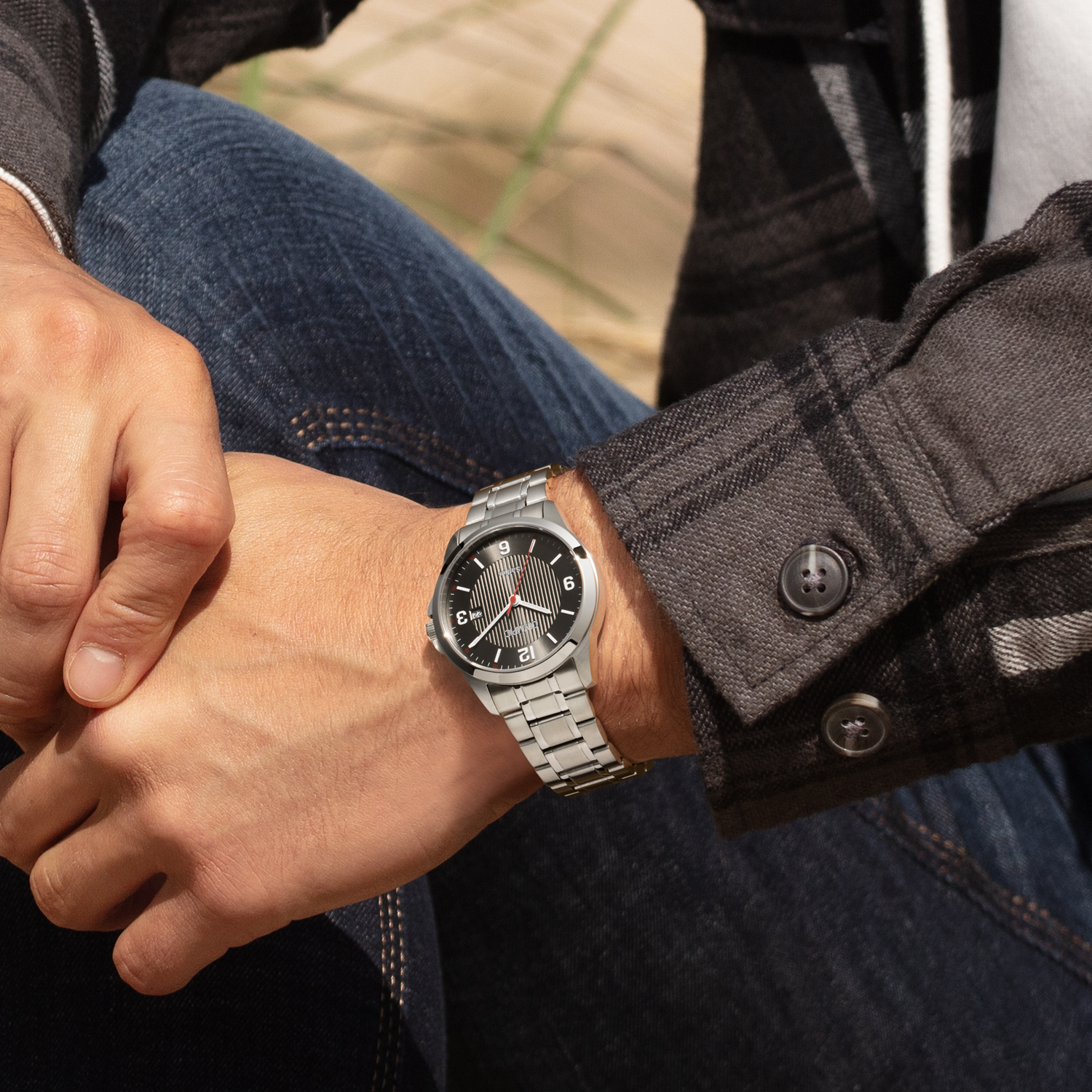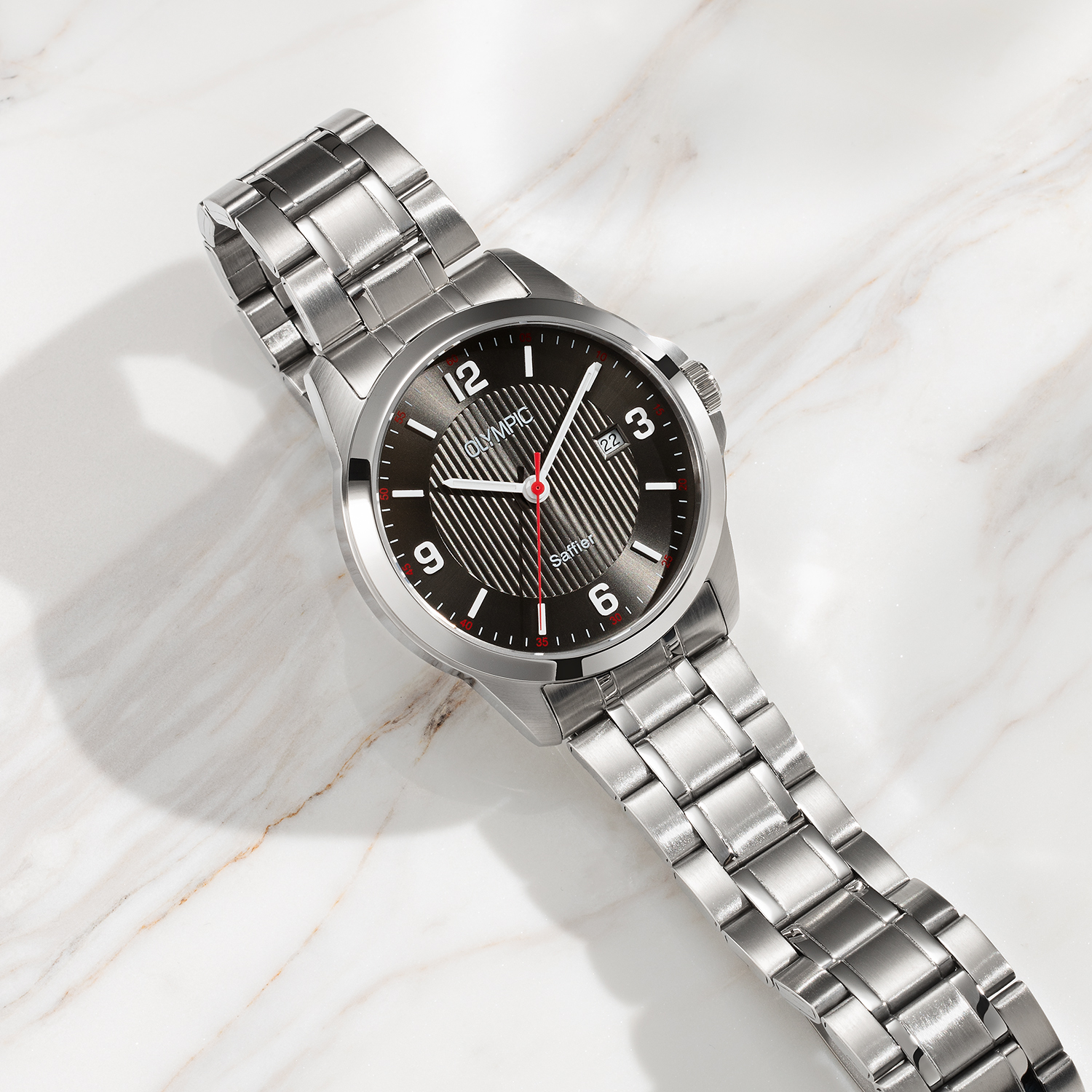 De OLYMPIC HORLOGE HEREN OL26HSS302 is een stijlvolle polshorloge met een roestvrijstalen kast en band, anti-allergeen en nikkelvrij. De analoge wijzerplaat is zwart met Arabische cijfers en een datumfunctie. Waterdicht tot 10 bar. Ideaal voor dagelijks gebruik, vooral in zakelijke omgevingen. Te dragen bij formele en casual outfits voor een tijdloze look.