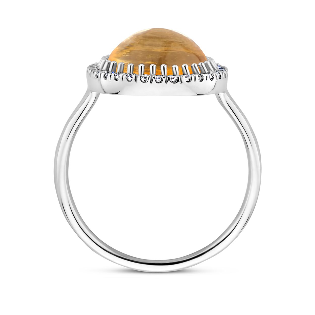 Gerhodineerd 925 zilveren ring uitgevoerd met citrien en zirkonia. De ring heeft een breedte van 13mm.