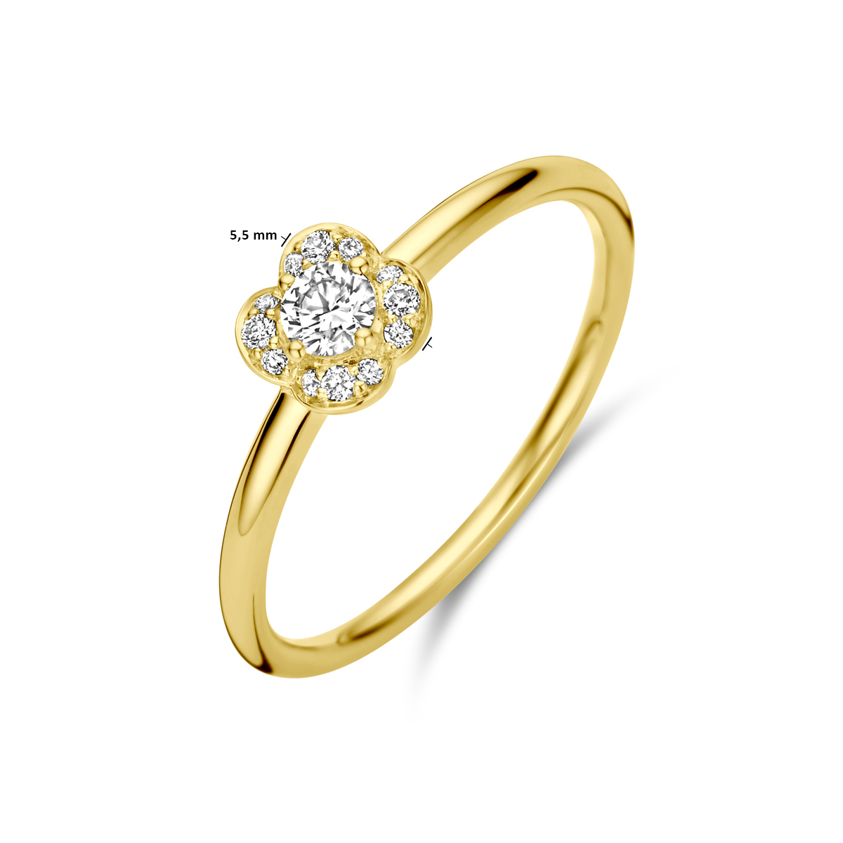 Deze prachtige Ring met diamant 0.17ct H SI  is gemaakt van goud en heeft een gewicht van 1.67. De ringmaat is 57 en de breedte is 5.5 mm. Met een briljante diamant in SI1 zuiverheid straalt deze ring elegantie uit. Perfect voor speciale gelegenheden; draag hem aan je ringvinger voor een verfijnde uitstraling.