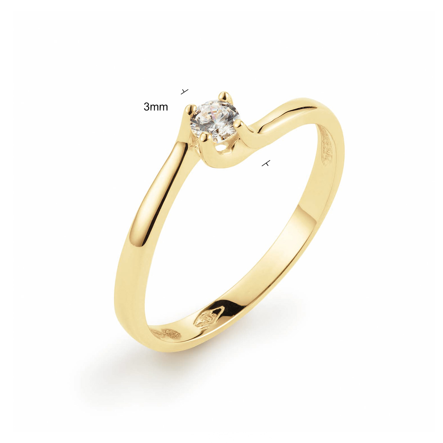 De Ring Solitair Slag Geelgoud CZ 585, modelnummer 214103758, is een verfijnde gouden ring met een breedte van 3,0 mm en een diepte van 4,0 mm, perfect voor maat 58. Gemaakt van hoogwaardig goud, weegt hij 1,5 gram. Het ideale accessoire voor speciale gelegenheden of dagelijks gebruik, draag hem als blikvanger op uw ringvinger.